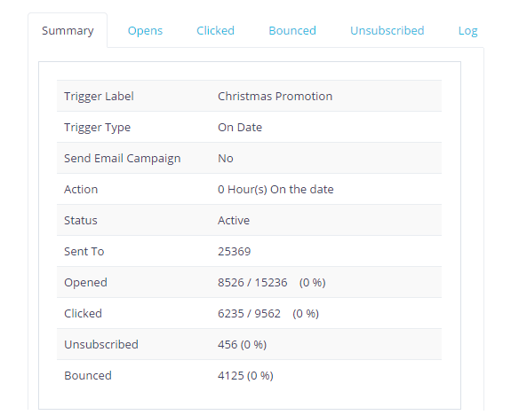 Bounced | Numbers of emails bounced back as a result of the trigger. |