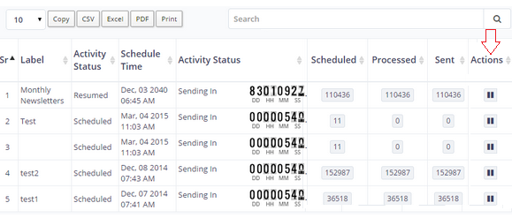 Pause | This lets you pause the campaign scheduled or in progress. |