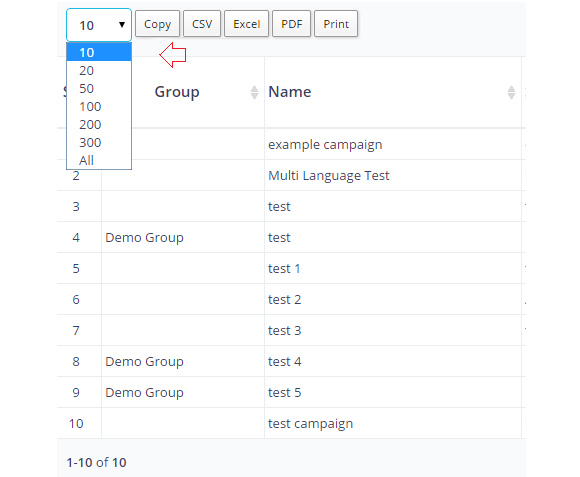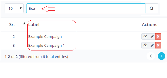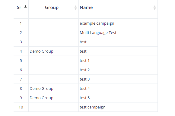 Sr | Sr is the abridged form of the serial number and in almost all the view page of MUMARA, Sr would be the first column to start the view table with. A serial number of view all campaigns shows the records in ascending order (1-10). You can view all records on one page, by selecting “All” from the dropdown to show the records per page. But if the list is too long, viewing all records on one page may reduce the speed. |