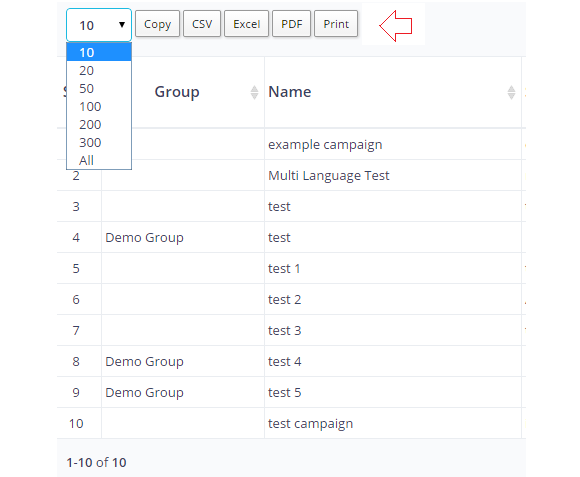 Use the copying options to copy the data in the columns of the table that appears below. You can copy the table by using the “Copy” button and can paste it manually in a file or can copy and save the complete table along with the columns to .CSV file, Excel, or PDF format. Further, you can get a printout of the complete table by clicking “Print”. See the following figure.