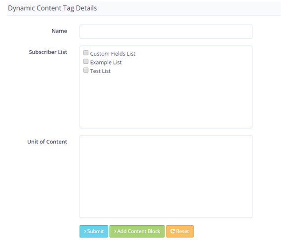 Following Figure illustrates this example content unit. Once you complete all the required fields, click “Submit” to add this content unit with this dynamic tag.