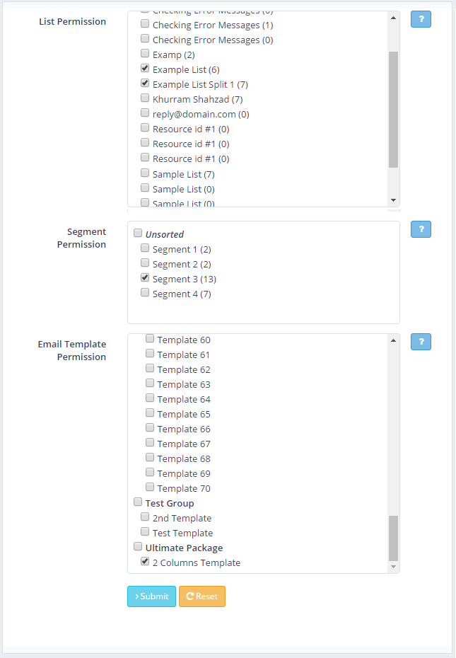 Once you have setup everything required, click “Submit” to save the new user’s role group. Click “Reset” to reorganize the permission for the group.