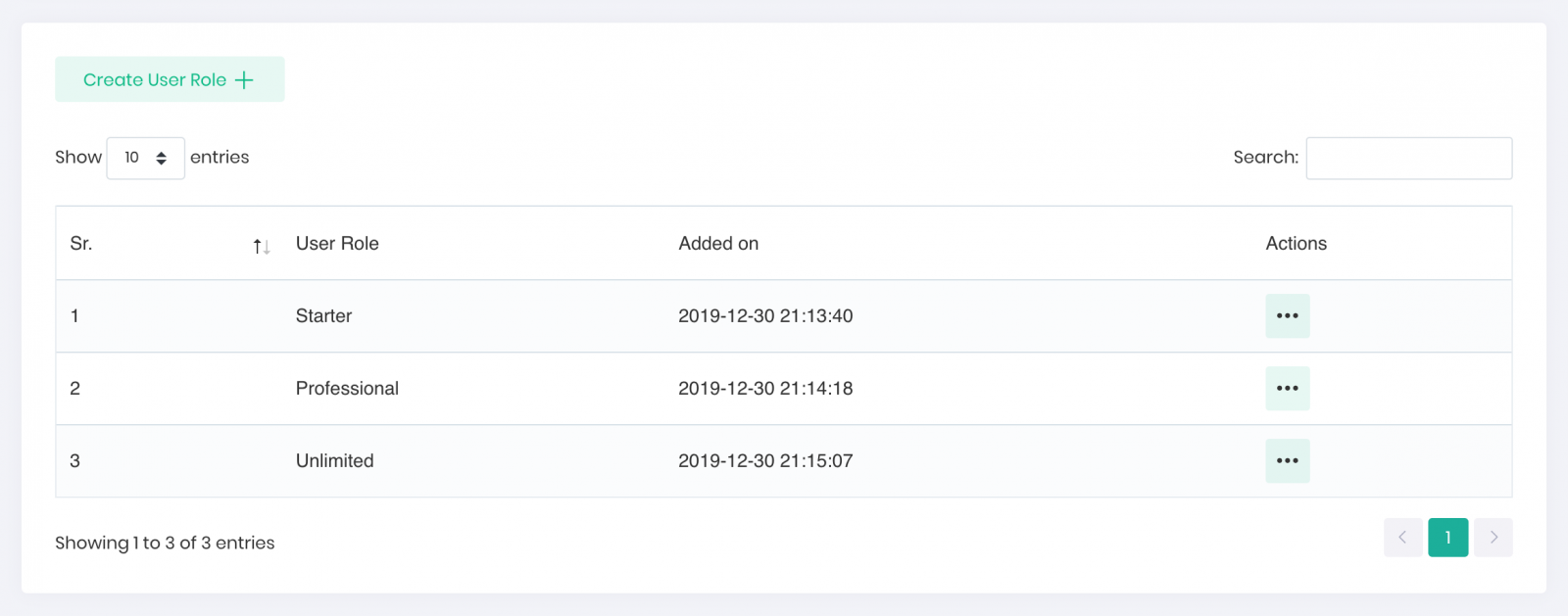 User roles are mandatory to be created before you can create packages and user accounts. Below you'll find a snapshot of the "User Roles" Page.