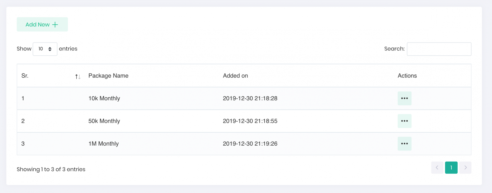 | Actions | Edit: Edit the package Delete: Delete the package |